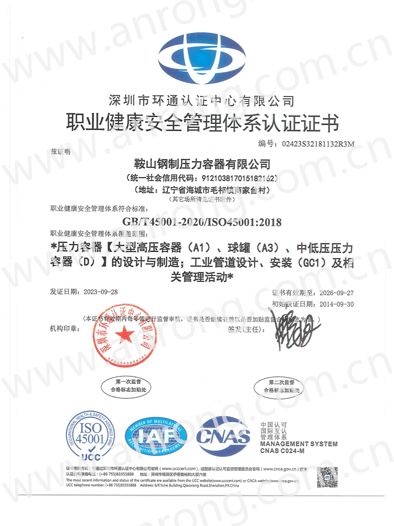 職業(yè)健康安全管理體系認(rèn)證證書(shū)