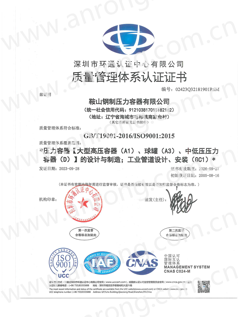 質(zhì)量管理體系認(rèn)證證書(shū)